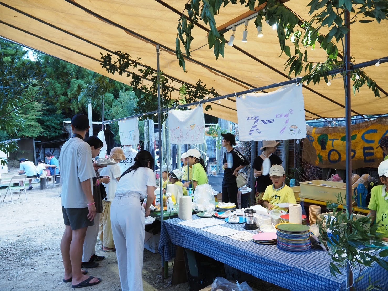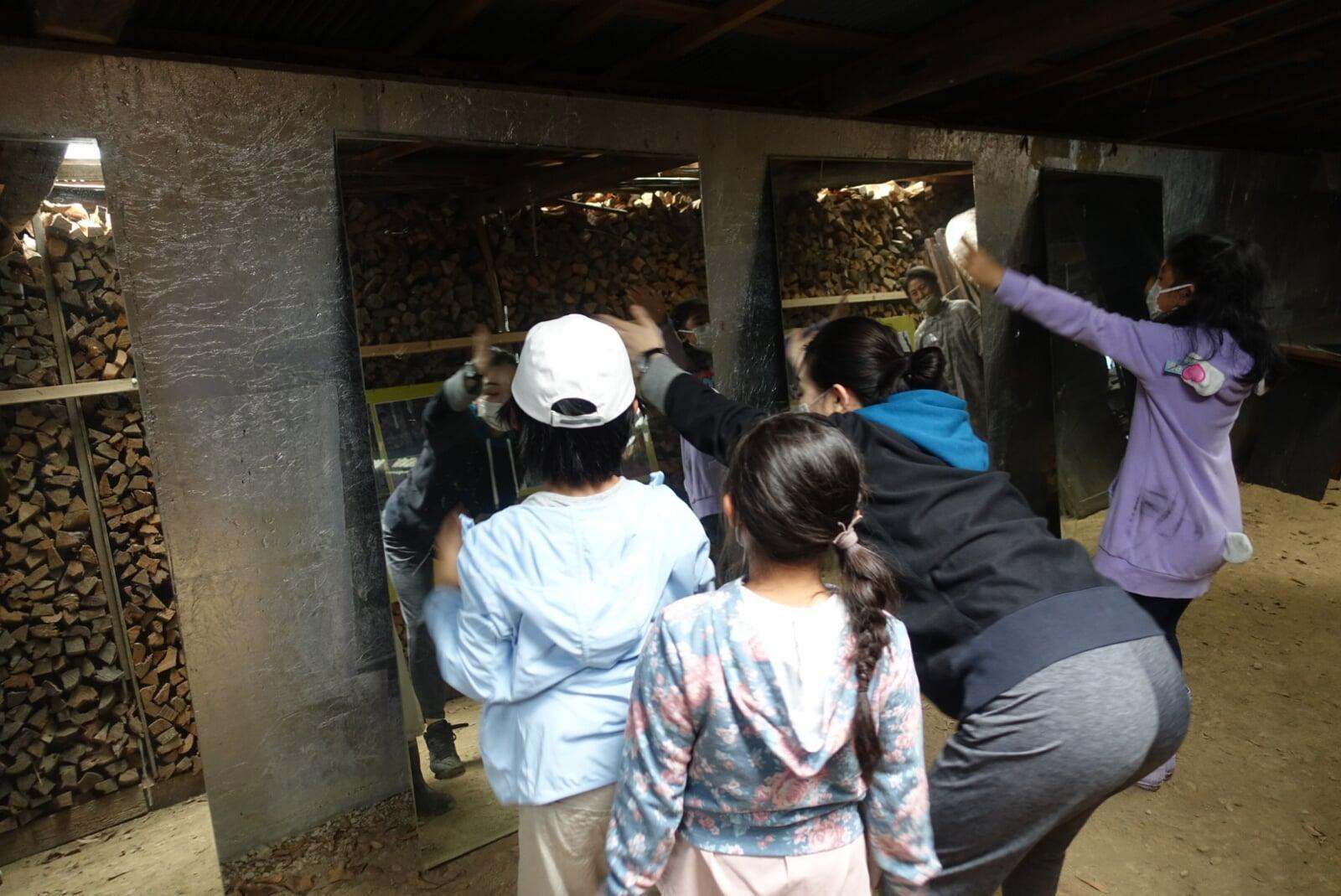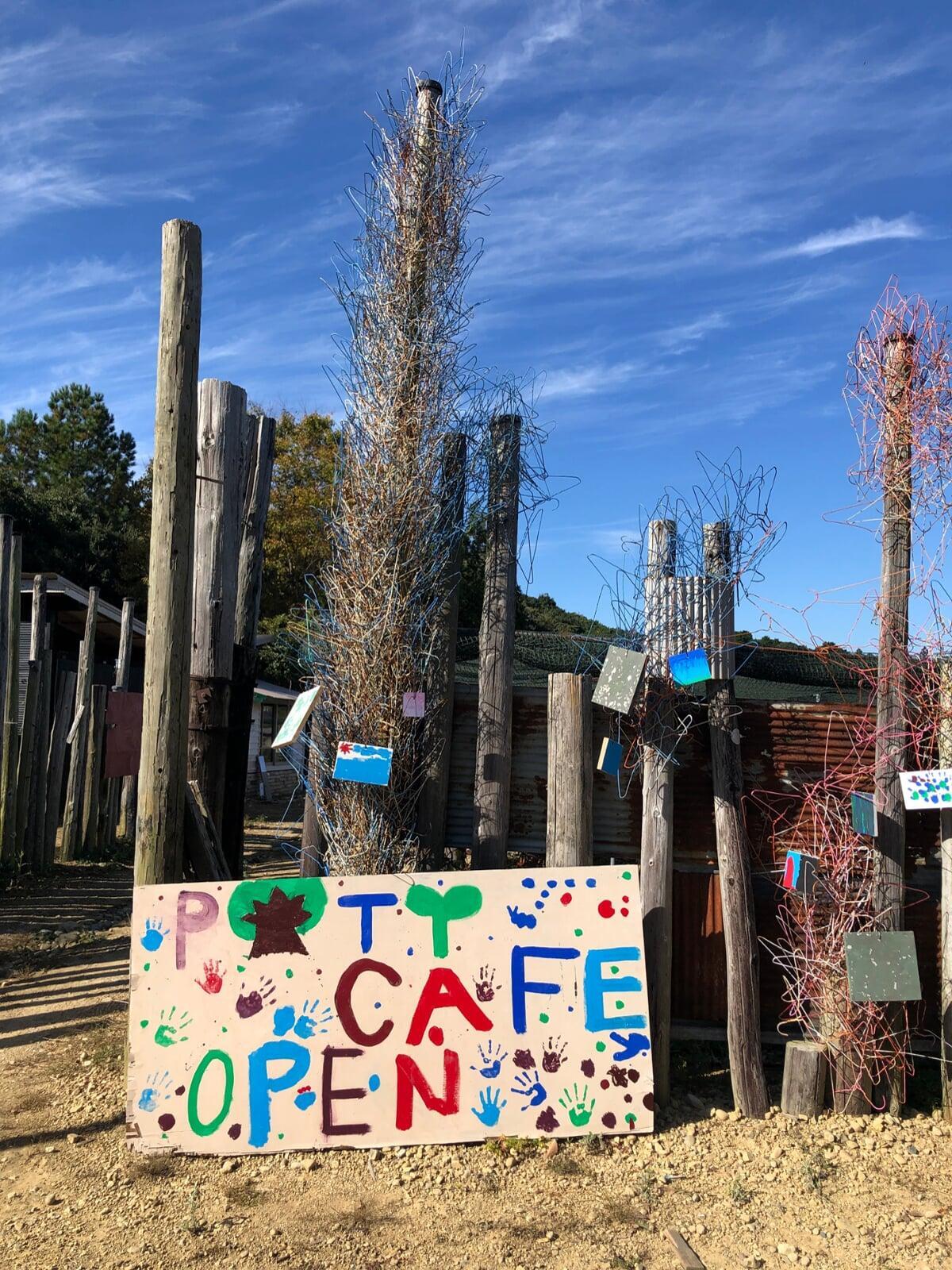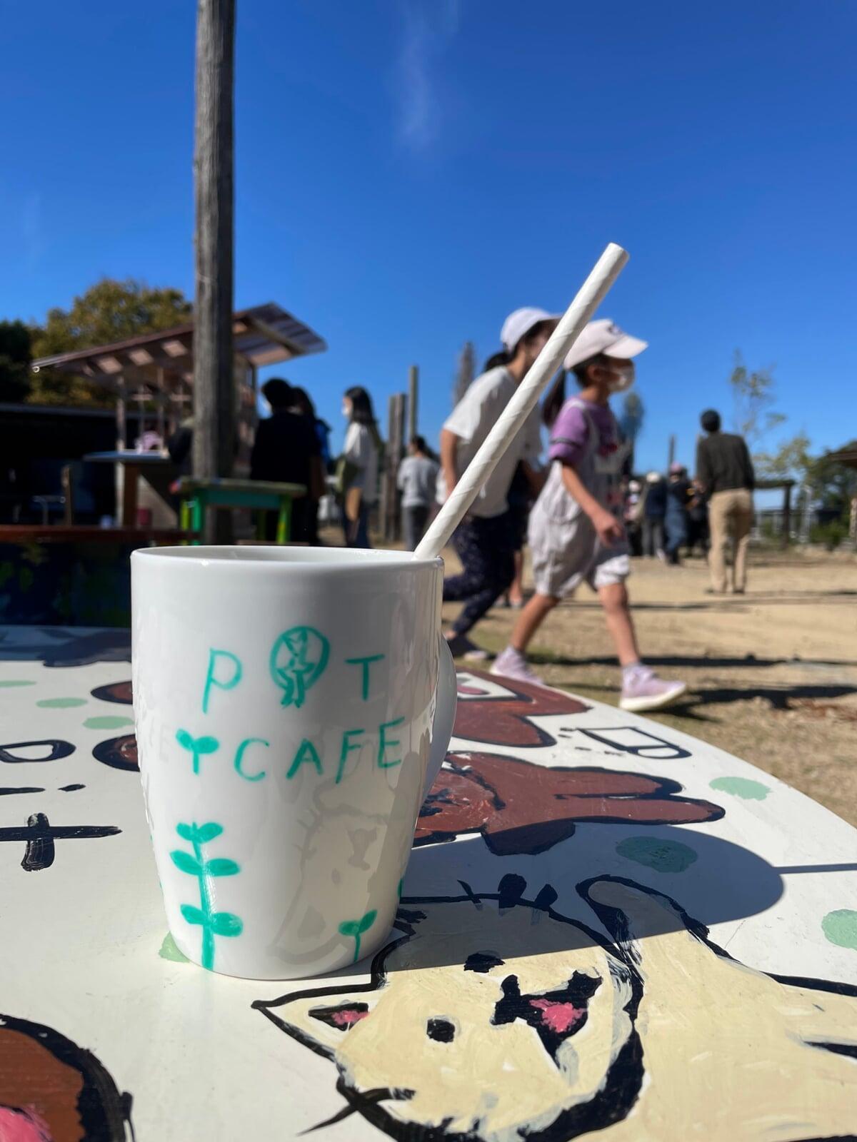 2022年、子どもたちの発案で前年に完成したPIT HOUSEでお店を開くことが決まりました。PIT HOUSEはまっさらな地面を掘るところから、すべて自分たちの手で作った建造物。お店をやるとしても、買ってきたものを売るのではなく、限りなく0から作りたいと思いました。そこで、PIT HOUSEの裏を畑にして、生姜を栽培しジンジャーエールのショップを開くことにしました。開墾、生姜の栽培、ロゴマークづくり、シロップやグッズづくりまで、子どもたちの手で一つ一つを準備し、カフェ当日には多くのお客さんをお出迎えしました。